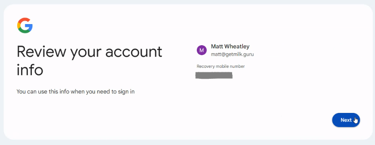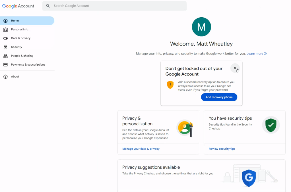 Step 5: Google Account Dashboard