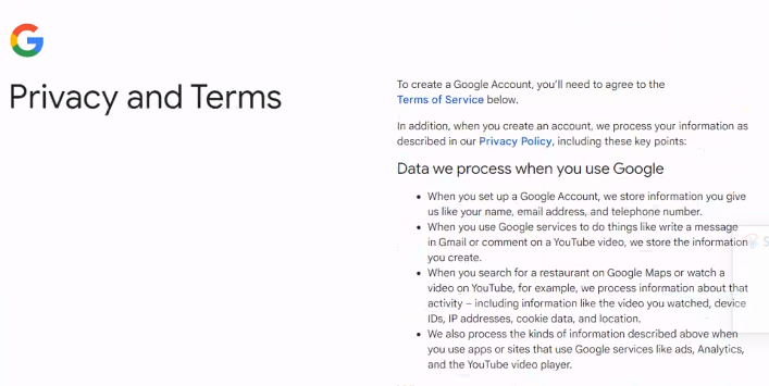 - Read through Google's Terms of Service and Privacy Policy.