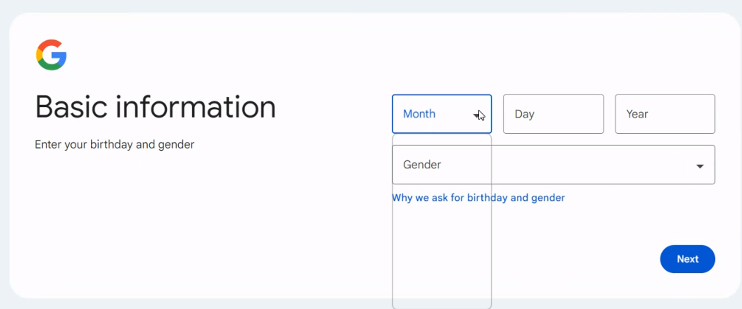 - Enter your birthday and gender.